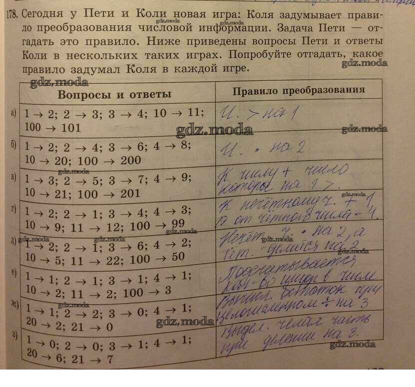ОТВЕТ на задание № 178 Рабочая тетрадь по Информатике 5 класс Босова