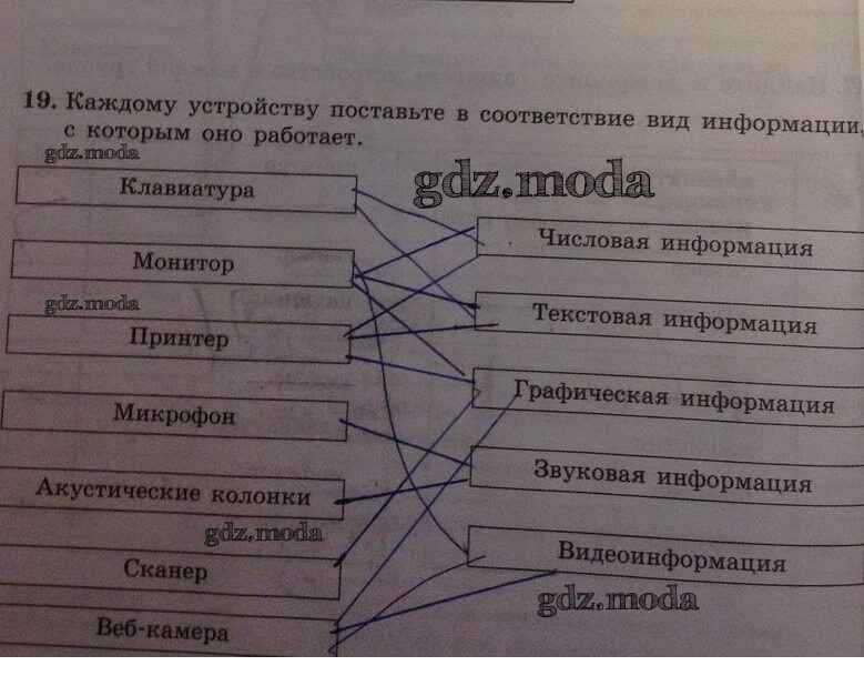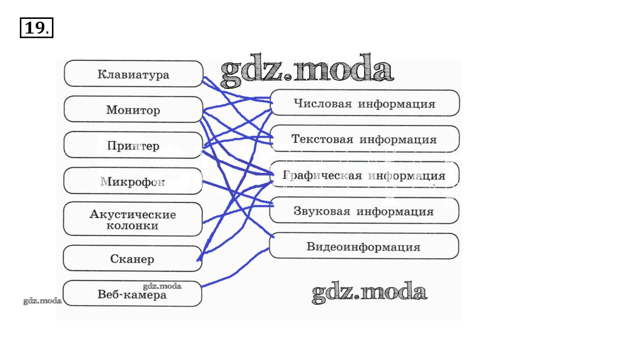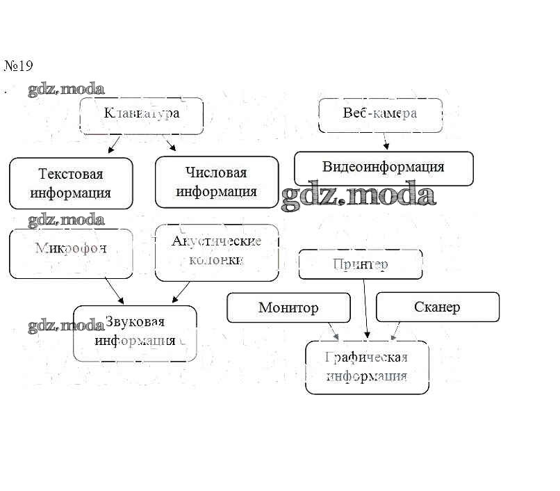 ГДЗ решение к заданию № 19 Информатика 5 класс рабочая тетрадь Босова Бином 2016 Часть 1, Часть 2 ФГОС бесплатно на гдз.мода!