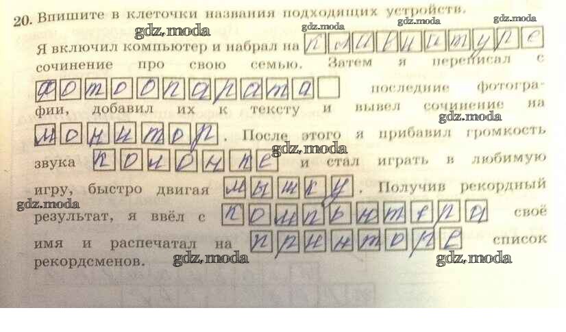 ОТВЕТ на задание № 20 Рабочая тетрадь по Информатике 5 класс Босова