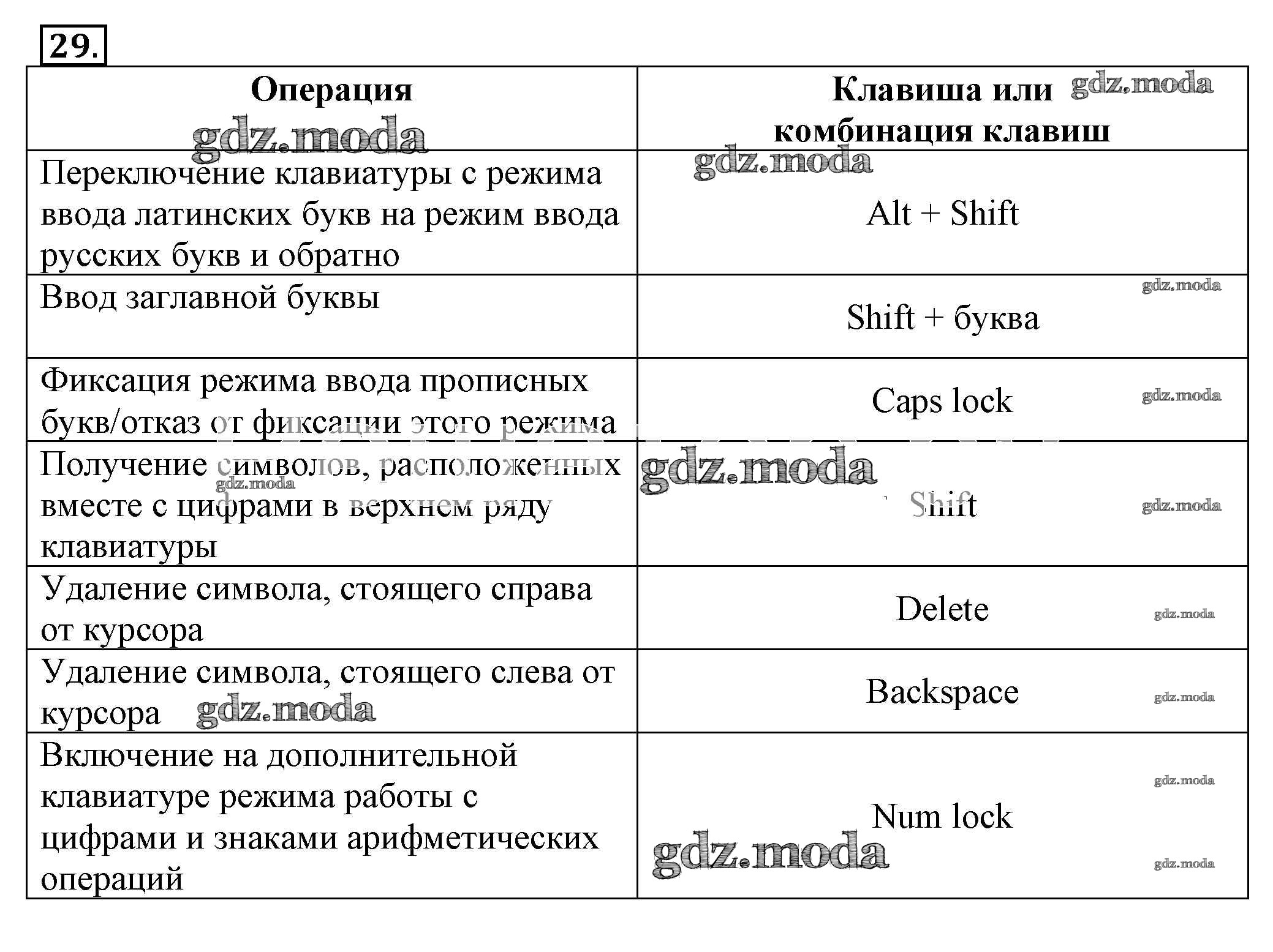 ГДЗ решение к заданию № 29 Информатика 5 класс рабочая тетрадь Босова Бином 2016 Часть 1, Часть 2 ФГОС бесплатно на гдз.мода!