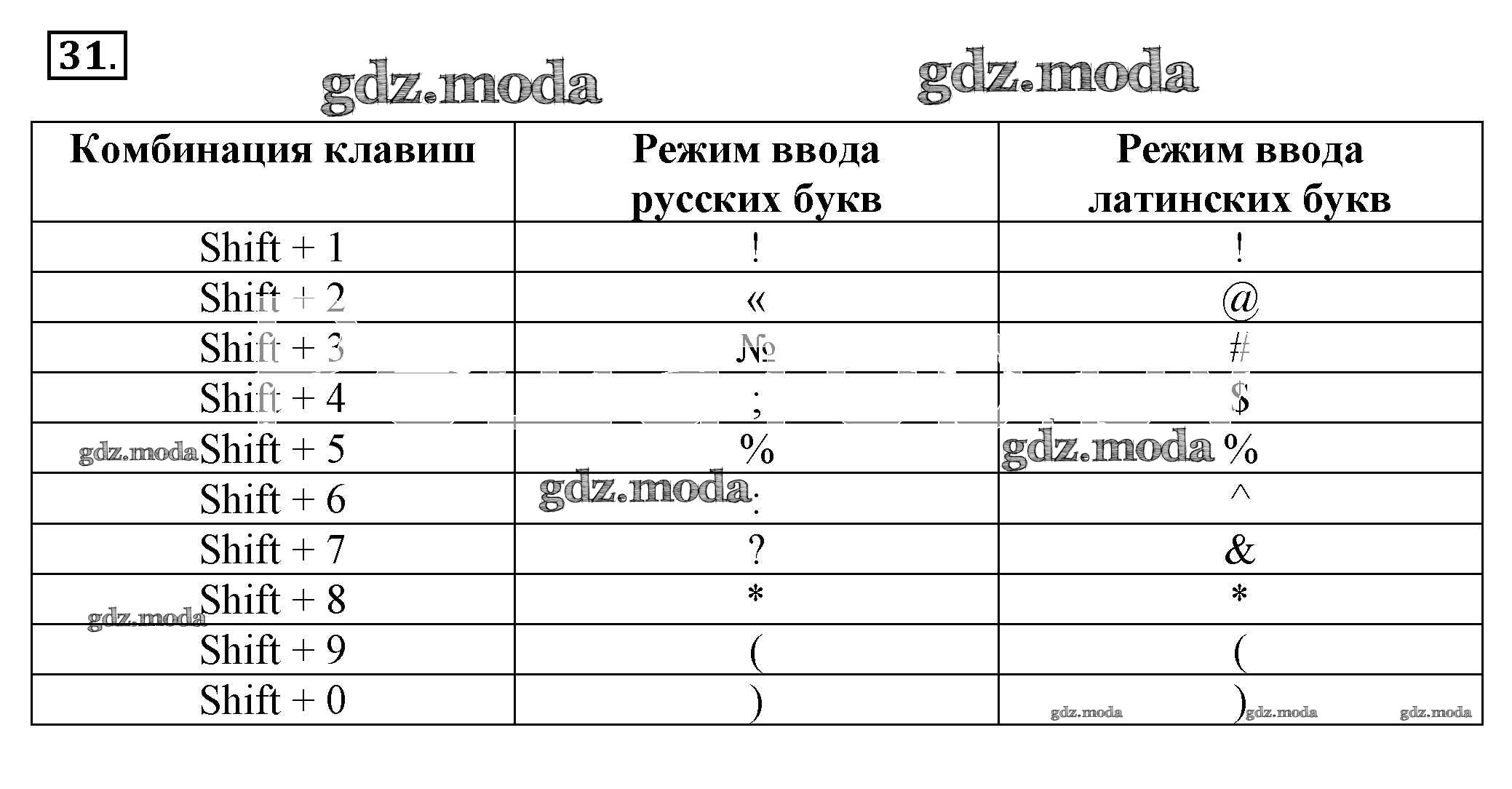 ГДЗ решение к заданию № 31 Информатика 5 класс рабочая тетрадь Босова Бином 2016 Часть 1, Часть 2 ФГОС бесплатно на гдз.мода!