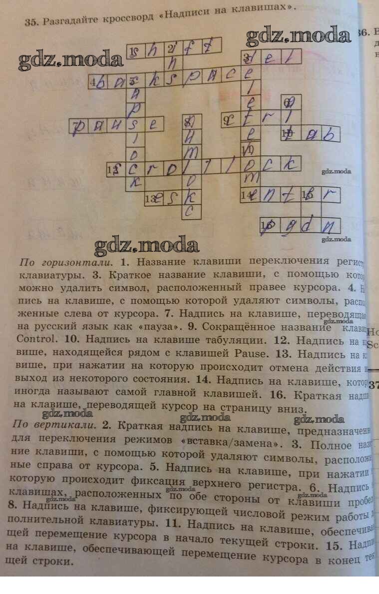 ГДЗ решение к заданию № 35 Информатика 5 класс рабочая тетрадь Босова Бином 2016 Часть 1, Часть 2 ФГОС бесплатно на гдз.мода!