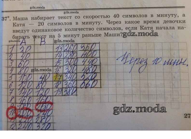ОТВЕТ на задание № 37 Рабочая тетрадь по Информатике 5 класс Босова