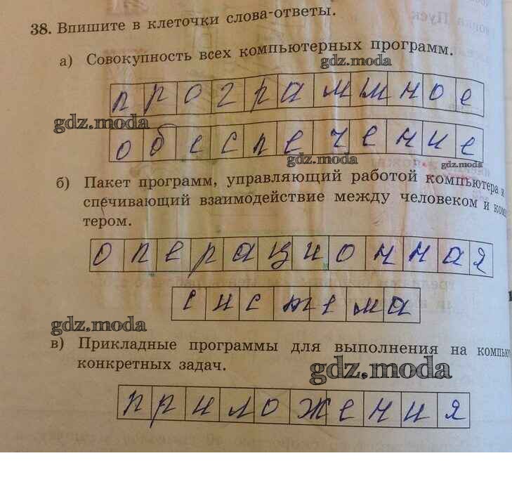 ОТВЕТ на задание № 38 Рабочая тетрадь по Информатике 5 класс Босова