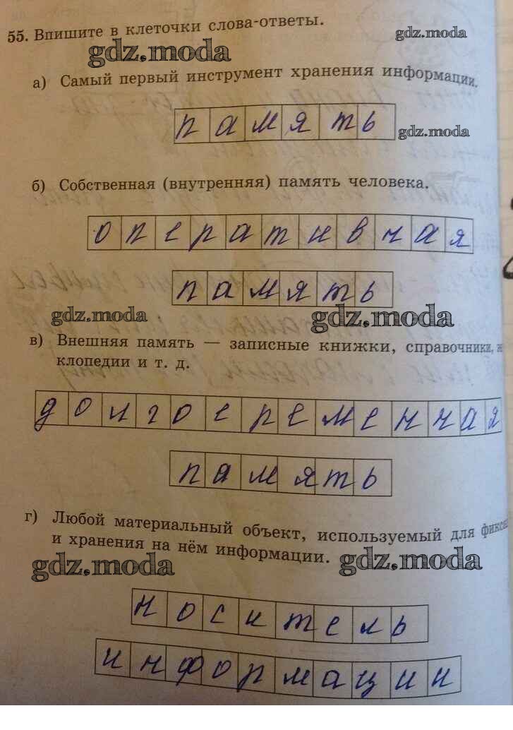 ОТВЕТ на задание № 55 Рабочая тетрадь по Информатике 5 класс Босова