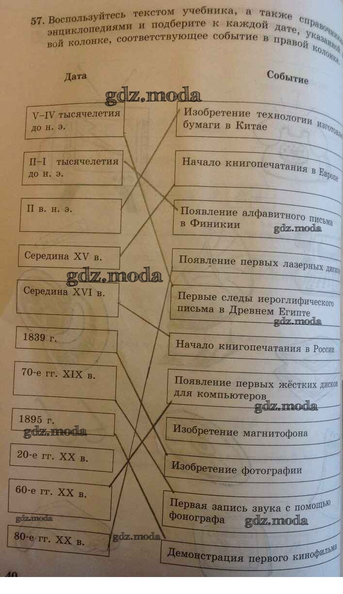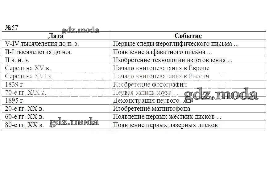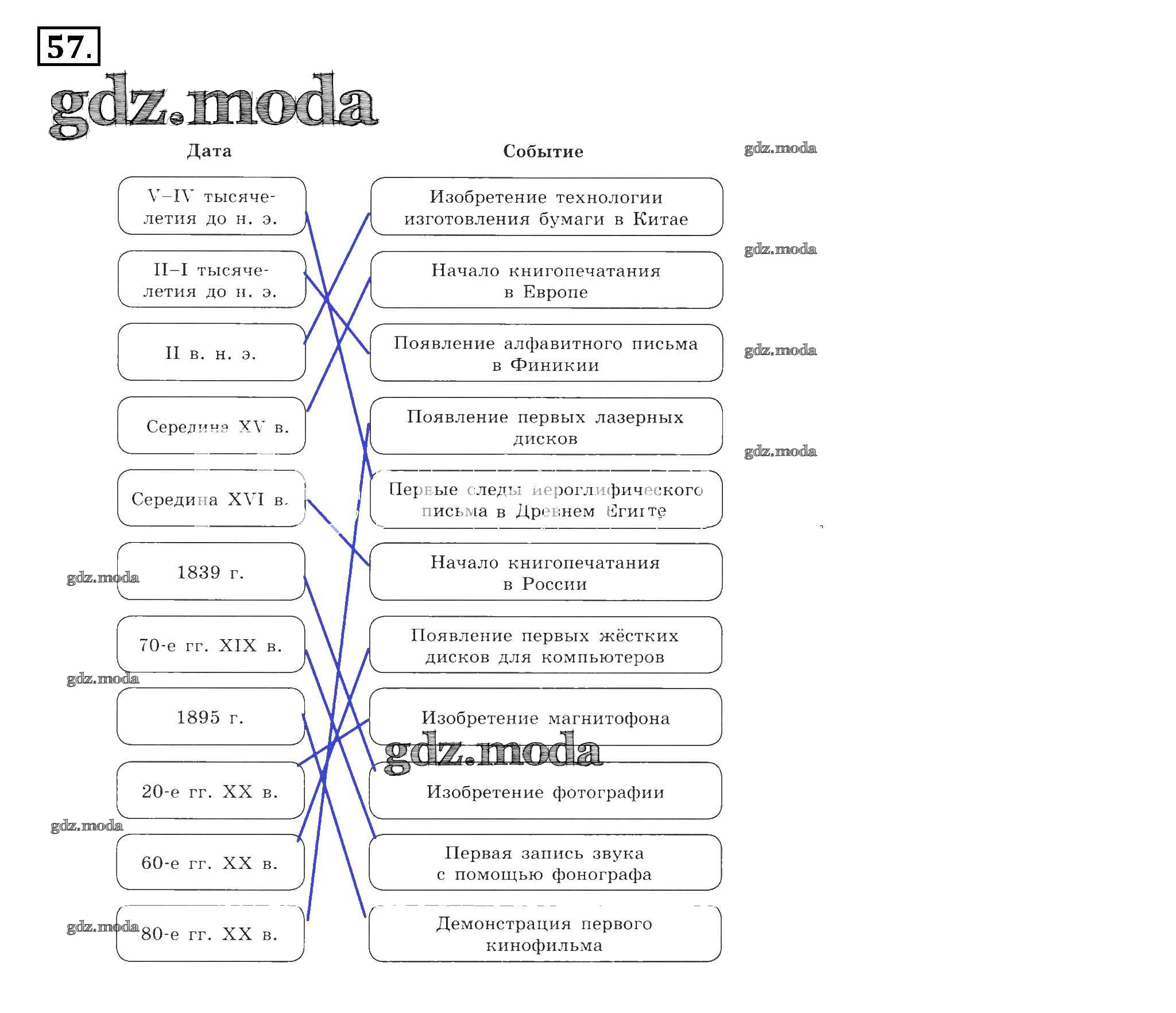 ОТВЕТ на задание № 57 Рабочая тетрадь по Информатике 5 класс Босова