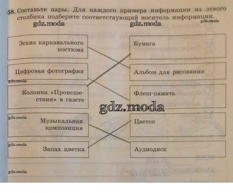 ОТВЕТ на задание № 58 Рабочая тетрадь по Информатике 5 класс Босова