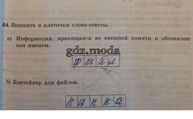 ОТВЕТ на задание № 64 Рабочая тетрадь по Информатике 5 класс Босова