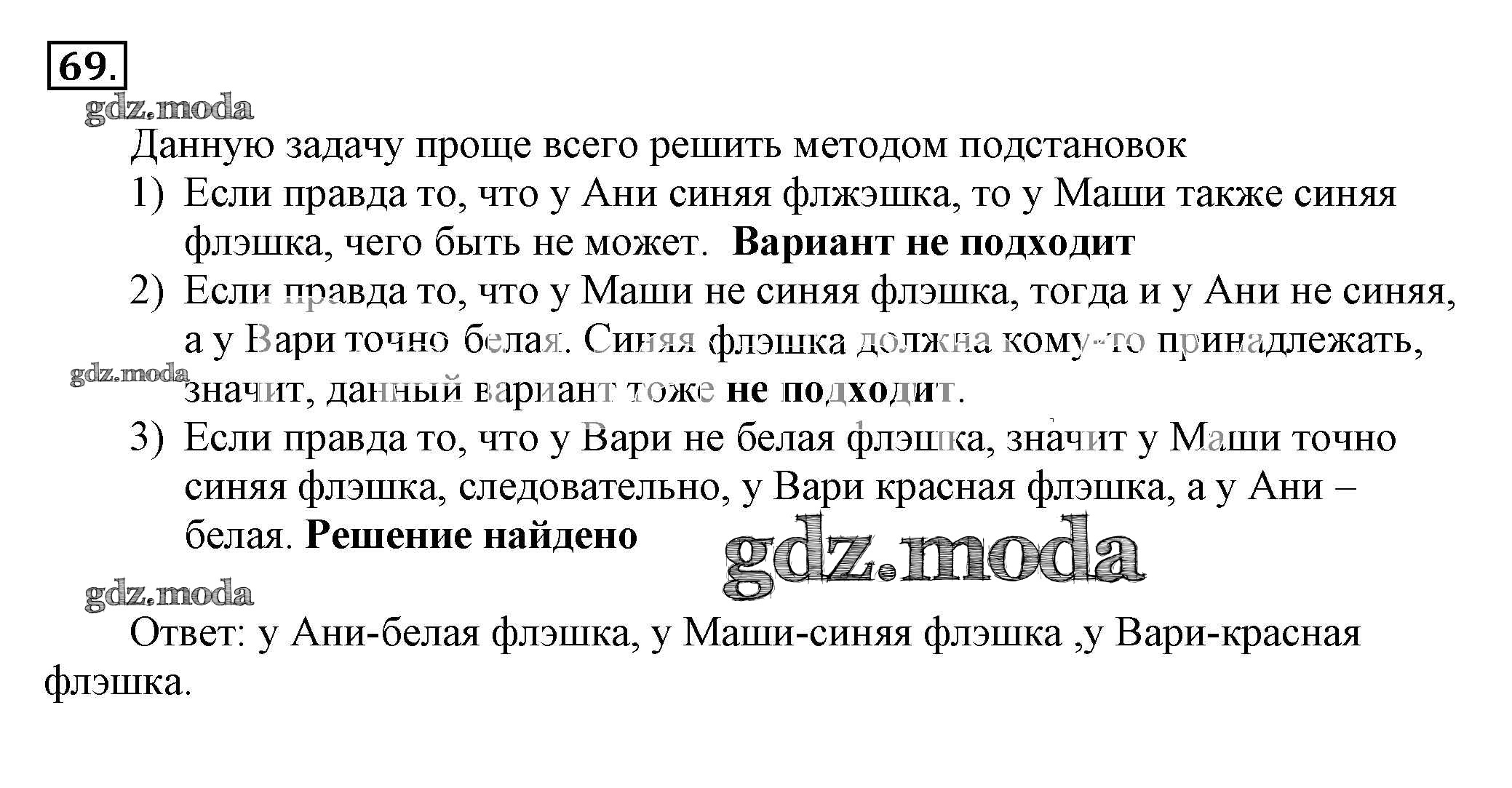 ОТВЕТ на задание № 69 Рабочая тетрадь по Информатике 5 класс Босова