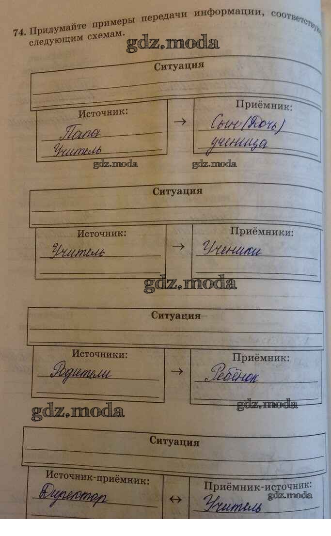 ОТВЕТ на задание № 74 Рабочая тетрадь по Информатике 5 класс Босова