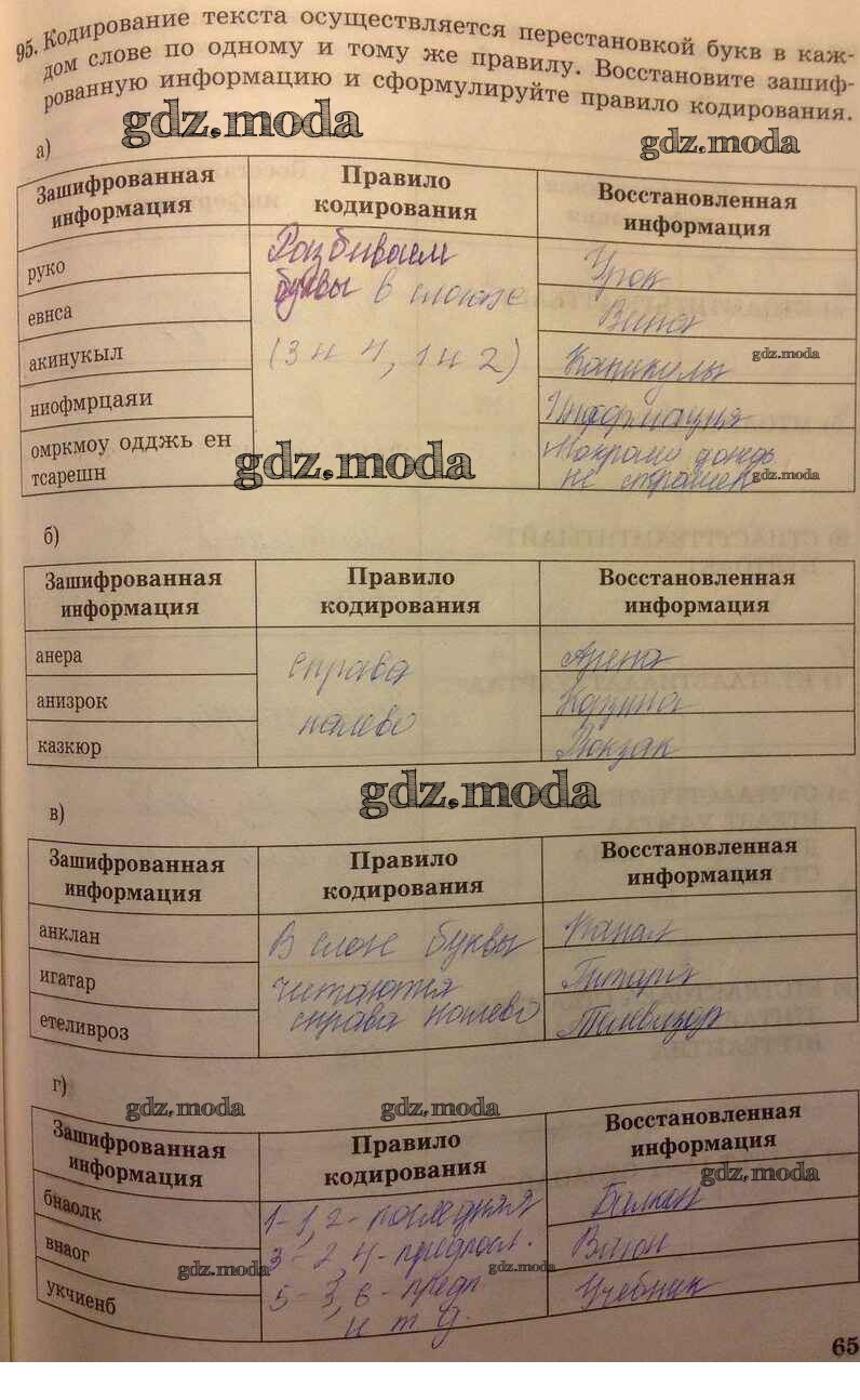 ОТВЕТ на задание № 95 Рабочая тетрадь по Информатике 5 класс Босова