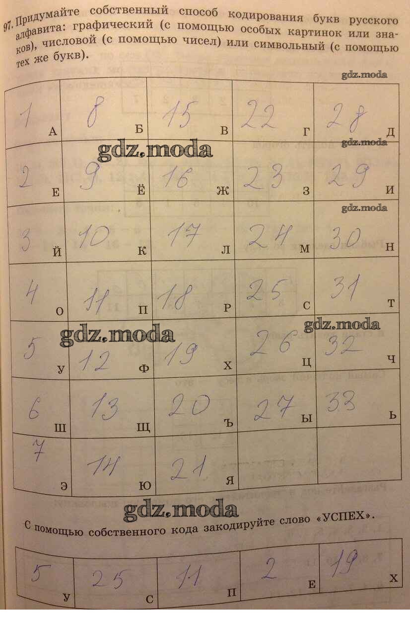 ОТВЕТ на задание № 97 Рабочая тетрадь по Информатике 5 класс Босова