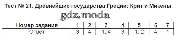 ГДЗ решение к заданию № Тест-21 История Древнего мира 5 класс Тесты Алексашкина Л.Н. (к уч. Андреевской) Экзамен 2017 ФГОС бесплатно на гдз.мода!
