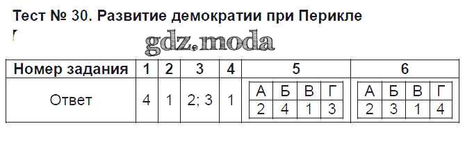 ГДЗ решение к заданию № Тест-30 История Древнего мира 5 класс Тесты Алексашкина Л.Н. (к уч. Андреевской) Экзамен 2017 ФГОС бесплатно на гдз.мода!