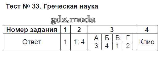 ГДЗ решение к заданию № Тест-33 История Древнего мира 5 класс Тесты Алексашкина Л.Н. (к уч. Андреевской) Экзамен 2017 ФГОС бесплатно на гдз.мода!