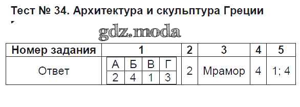 ГДЗ решение к заданию № Тест-34 История Древнего мира 5 класс Тесты Алексашкина Л.Н. (к уч. Андреевской) Экзамен 2017 ФГОС бесплатно на гдз.мода!