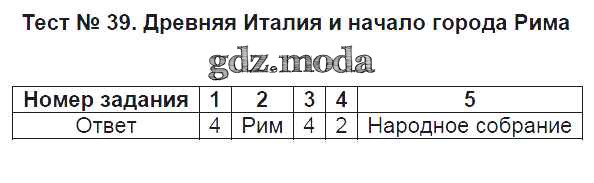 ГДЗ решение к заданию № Тест-39 История Древнего мира 5 класс Тесты Алексашкина Л.Н. (к уч. Андреевской) Экзамен 2017 ФГОС бесплатно на гдз.мода!