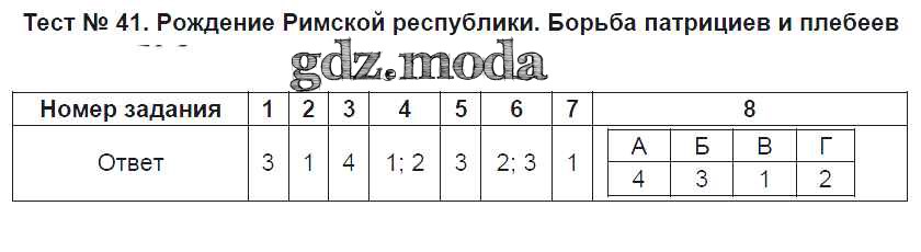 ГДЗ решение к заданию № Тест-41 История Древнего мира 5 класс Тесты Алексашкина Л.Н. (к уч. Андреевской) Экзамен 2017 ФГОС бесплатно на гдз.мода!