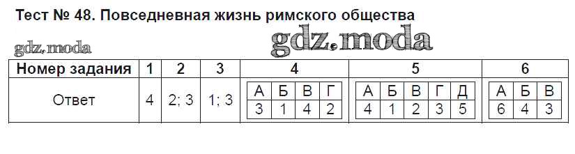 ГДЗ решение к заданию № Тест-48 История Древнего мира 5 класс Тесты Алексашкина Л.Н. (к уч. Андреевской) Экзамен 2017 ФГОС бесплатно на гдз.мода!