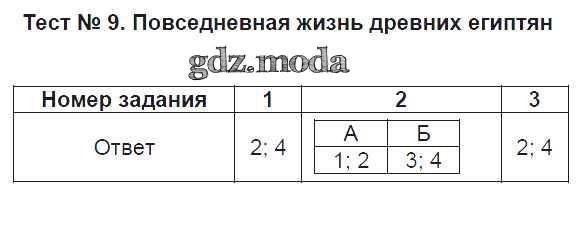 ГДЗ решение к заданию № Тест-9 История Древнего мира 5 класс Тесты Алексашкина Л.Н. (к уч. Андреевской) Экзамен 2017 ФГОС бесплатно на гдз.мода!