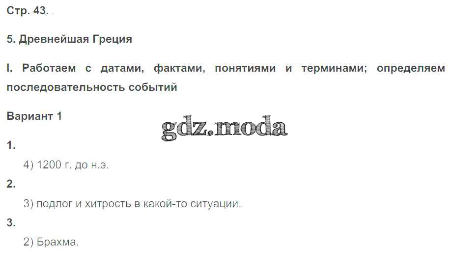 ГДЗ решение к заданию № 43 История Древнего мира 5 класс рабочая тетрадь Чернова М.Н. (к уч. Вигасина) Экзамен 2019 ФГОС бесплатно на гдз.мода!