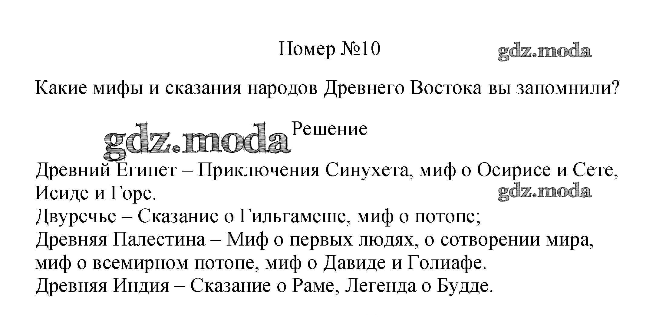 ГДЗ решение к заданию № 10 История Древнего мира 5 класс Вигасин А.А. Просвещение 2010 ФГОС бесплатно на гдз.мода!