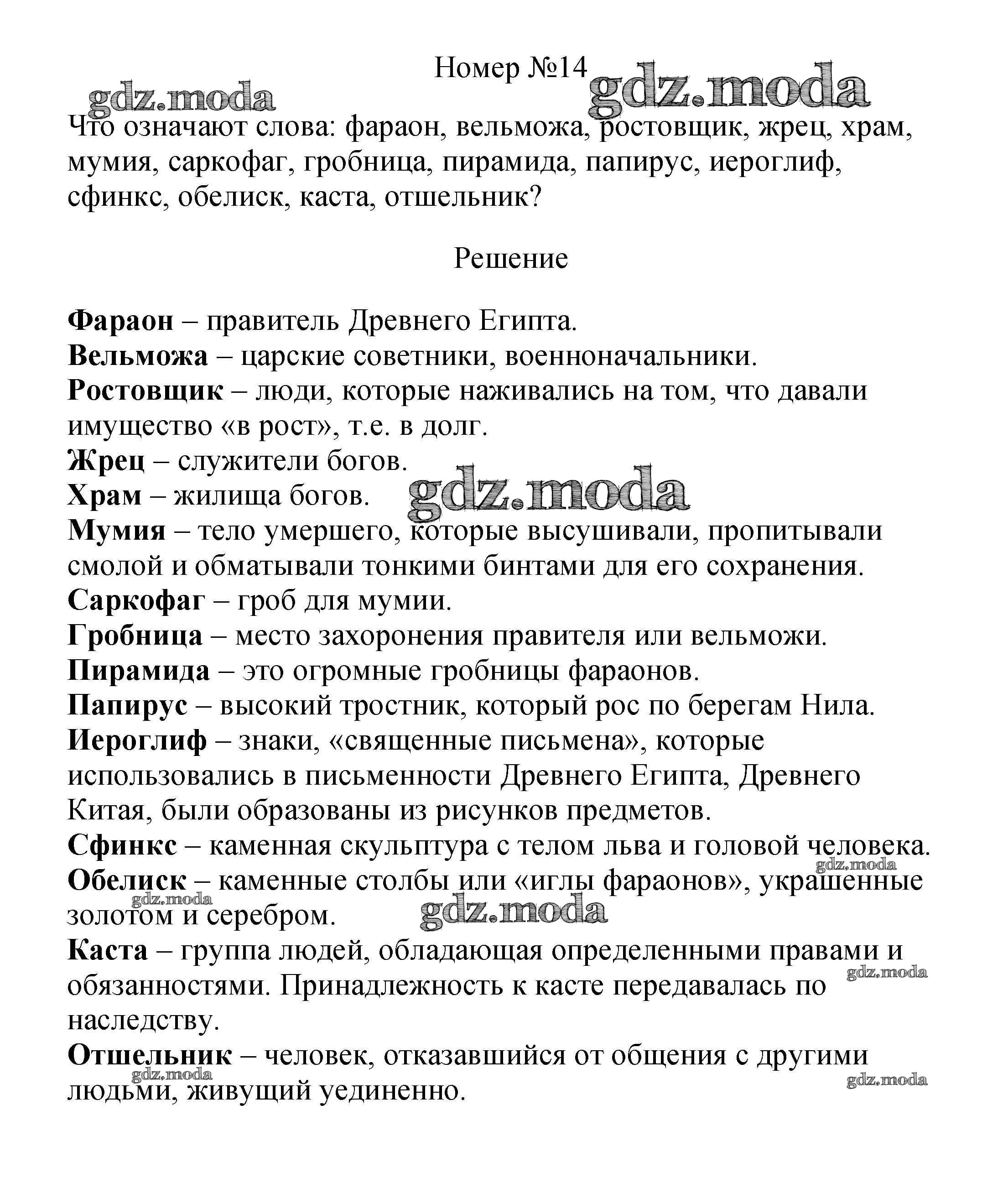 ГДЗ решение к заданию № 14 История Древнего мира 5 класс Вигасин А.А. Просвещение 2010 ФГОС бесплатно на гдз.мода!