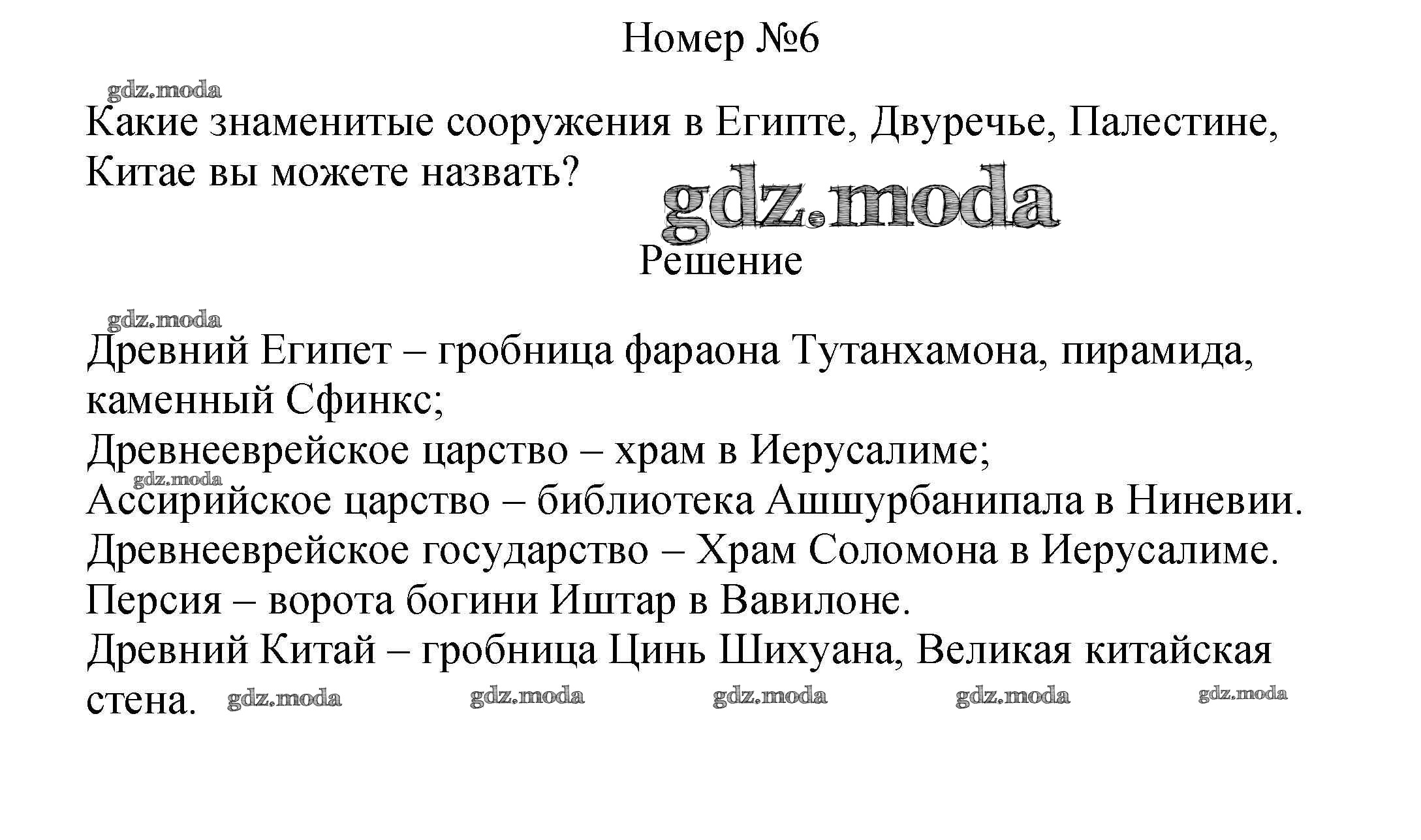 ГДЗ решение к заданию № 6 История Древнего мира 5 класс Вигасин А.А. Просвещение 2010 ФГОС бесплатно на гдз.мода!