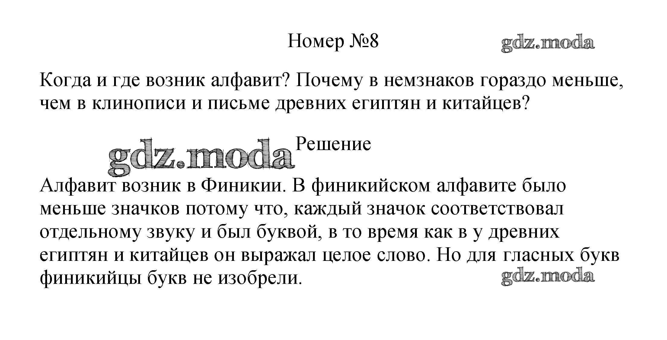 ГДЗ решение к заданию № 8 История Древнего мира 5 класс Вигасин А.А. Просвещение 2010 ФГОС бесплатно на гдз.мода!