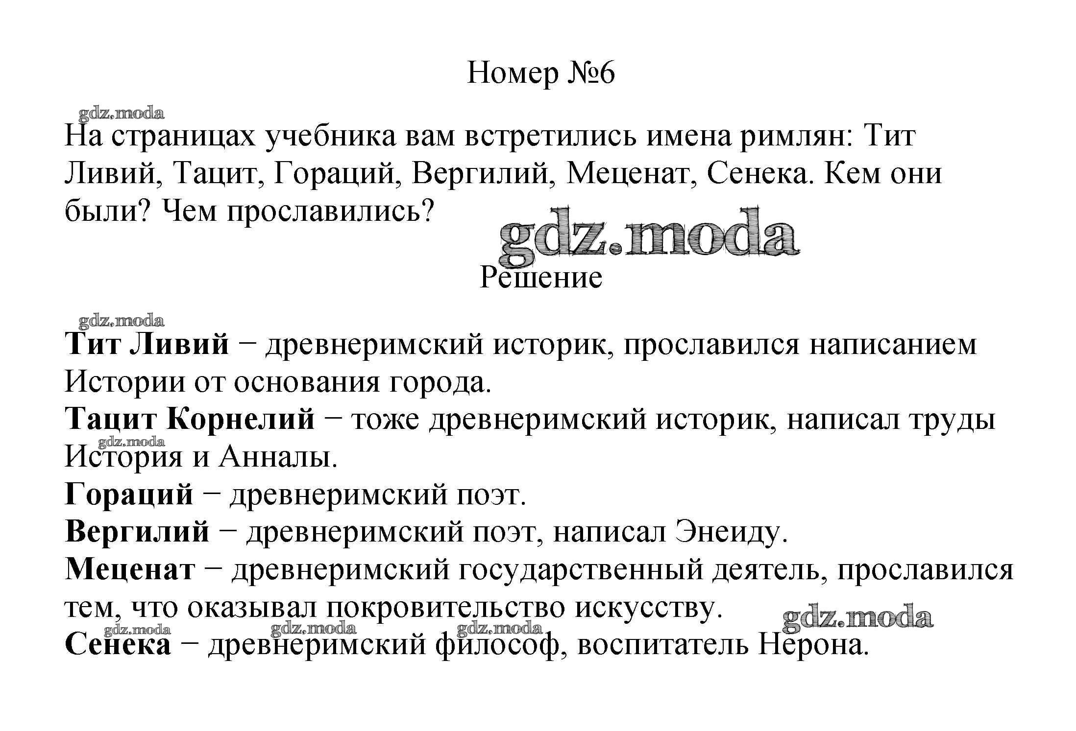 ГДЗ решение к заданию № 6 История Древнего мира 5 класс Вигасин А.А. Просвещение 2010 ФГОС бесплатно на гдз.мода!