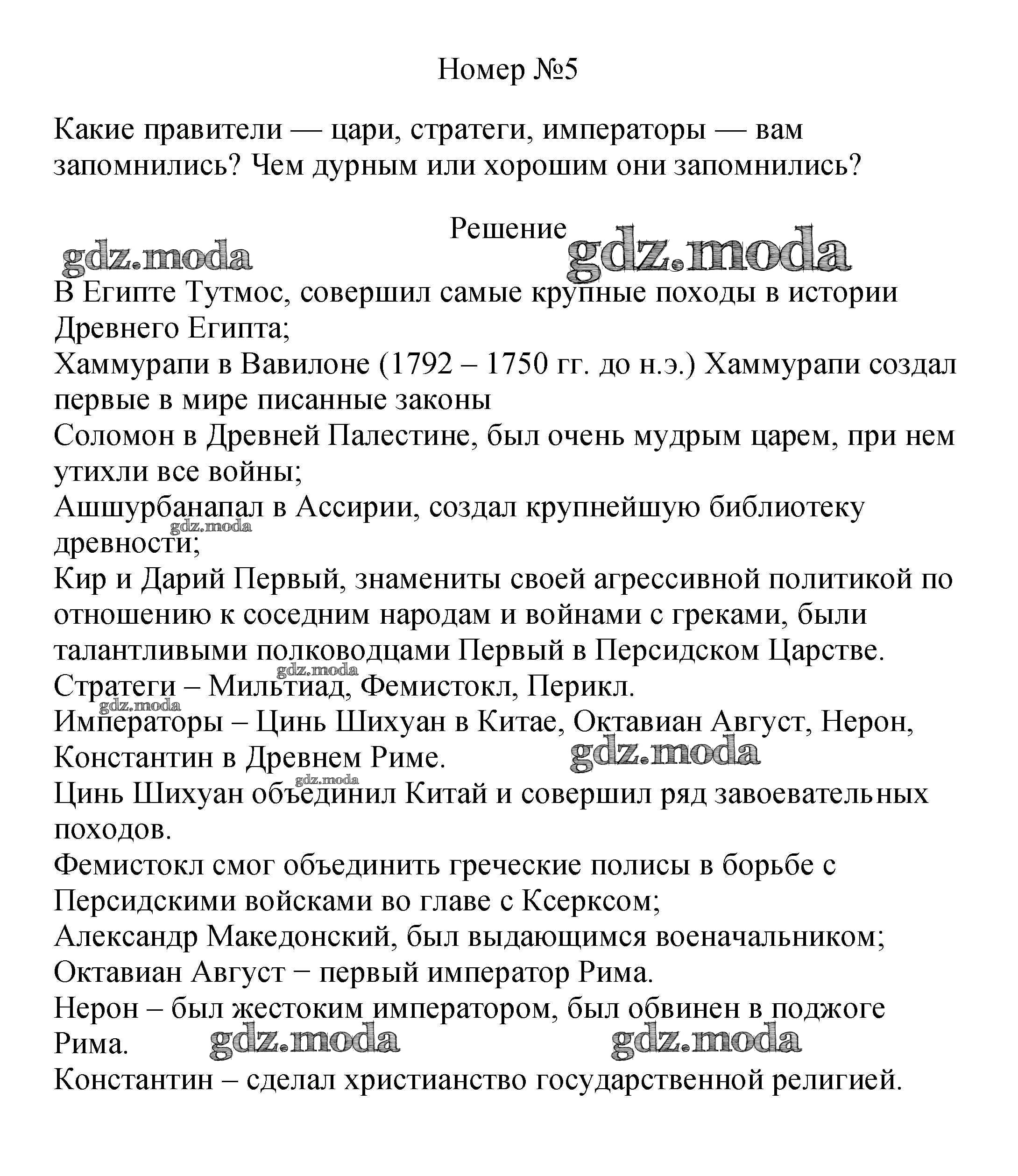 ГДЗ решение к заданию № 5 История Древнего мира 5 класс Вигасин А.А. Просвещение 2010 ФГОС бесплатно на гдз.мода!