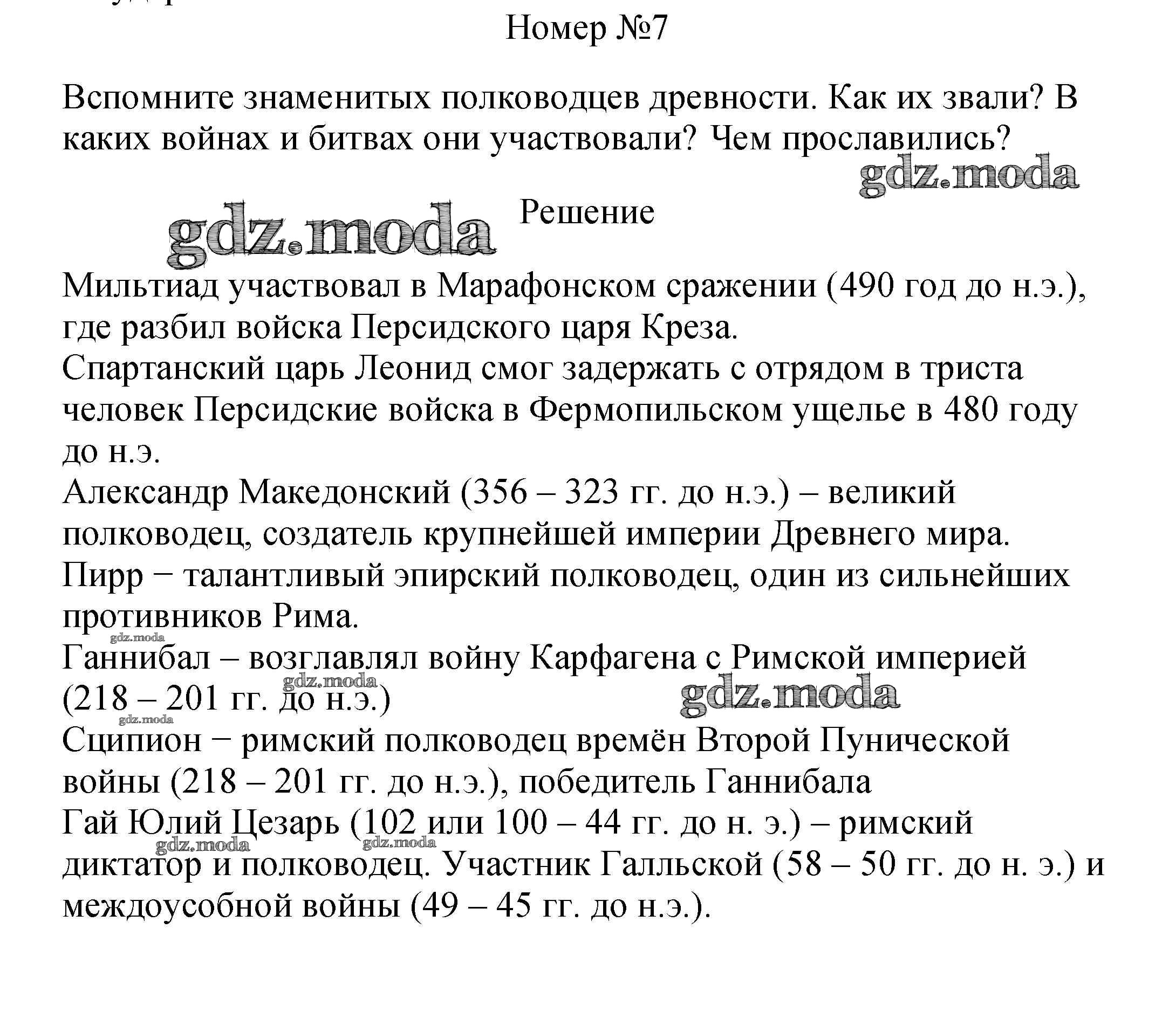 ГДЗ решение к заданию № 7 История Древнего мира 5 класс Вигасин А.А. Просвещение 2010 ФГОС бесплатно на гдз.мода!