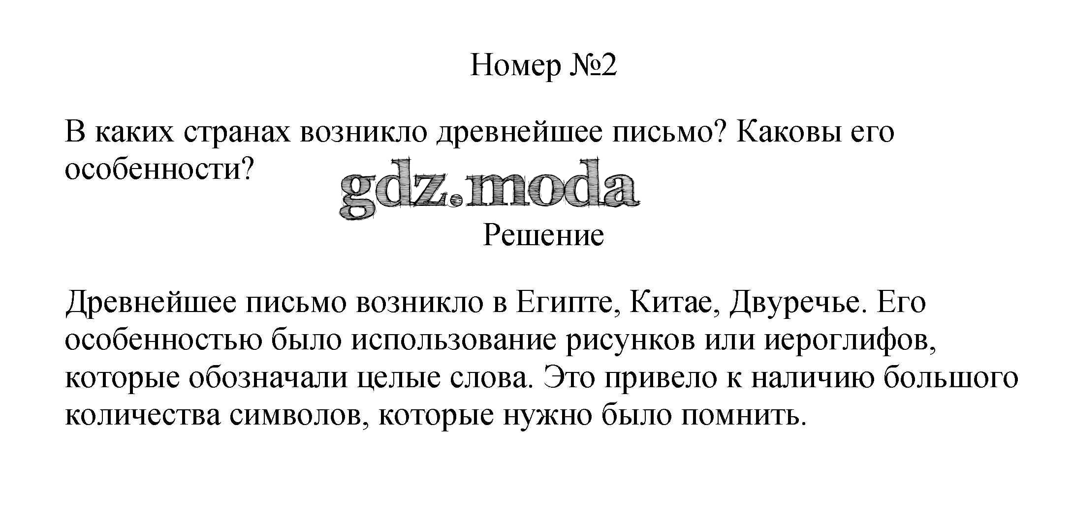 ГДЗ решение к заданию № 2 История Древнего мира 5 класс Вигасин А.А. Просвещение 2010 ФГОС бесплатно на гдз.мода!