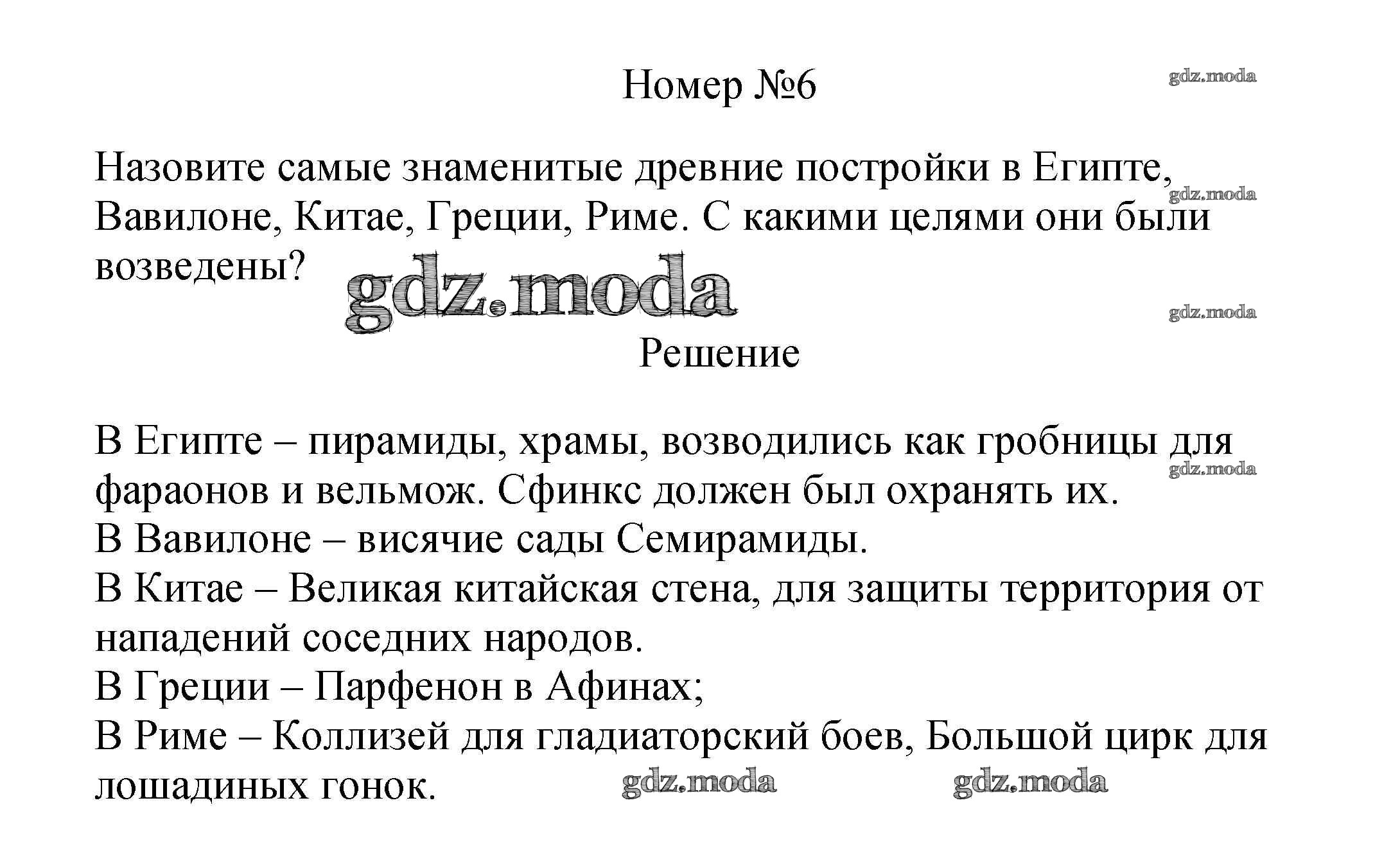 ГДЗ решение к заданию № 6 История Древнего мира 5 класс Вигасин А.А. Просвещение 2010 ФГОС бесплатно на гдз.мода!