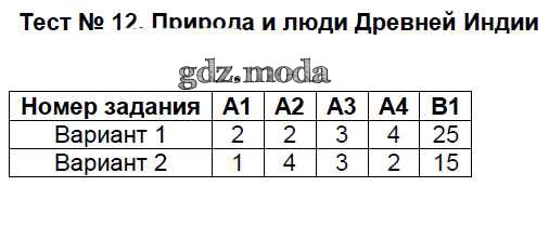 ГДЗ решение к заданию № Тест №12. Природа и люди Древней Индии Всеобщая история. История Древнего мира 5 класс контрольно-измерительные материалы Волкова К.В. ВАКО 2017 ФГОС бесплатно на гдз.мода!