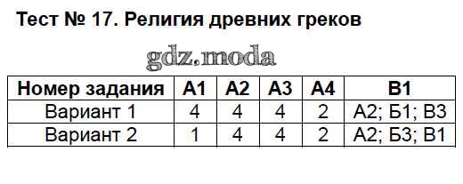 ГДЗ решение к заданию № Тест №17. Религия древних греков Всеобщая история. История Древнего мира 5 класс контрольно-измерительные материалы Волкова К.В. ВАКО 2017 ФГОС бесплатно на гдз.мода!