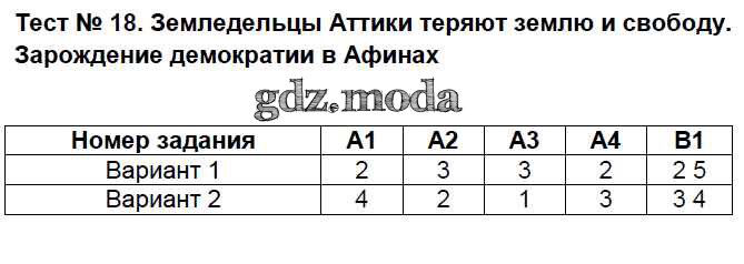 ГДЗ решение к заданию № Тест №18. Земледельцы Аттики теряют землю и свободу Всеобщая история. История Древнего мира 5 класс контрольно-измерительные материалы Волкова К.В. ВАКО 2017 ФГОС бесплатно на гдз.мода!
