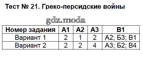 ГДЗ решение к заданию № Тест №21. Греко-персидские войны Всеобщая история. История Древнего мира 5 класс контрольно-измерительные материалы Волкова К.В. ВАКО 2017 ФГОС бесплатно на гдз.мода!