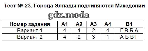 ГДЗ решение к заданию № Тест №23. Города Эллады подчиняются Македонии Всеобщая история. История Древнего мира 5 класс контрольно-измерительные материалы Волкова К.В. ВАКО 2017 ФГОС бесплатно на гдз.мода!