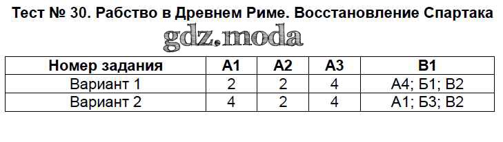 ГДЗ решение к заданию № Тест №30. Рабство в Древнем Риме. Восстановление Спартака Всеобщая история. История Древнего мира 5 класс контрольно-измерительные материалы Волкова К.В. ВАКО 2017 ФГОС бесплатно на гдз.мода!