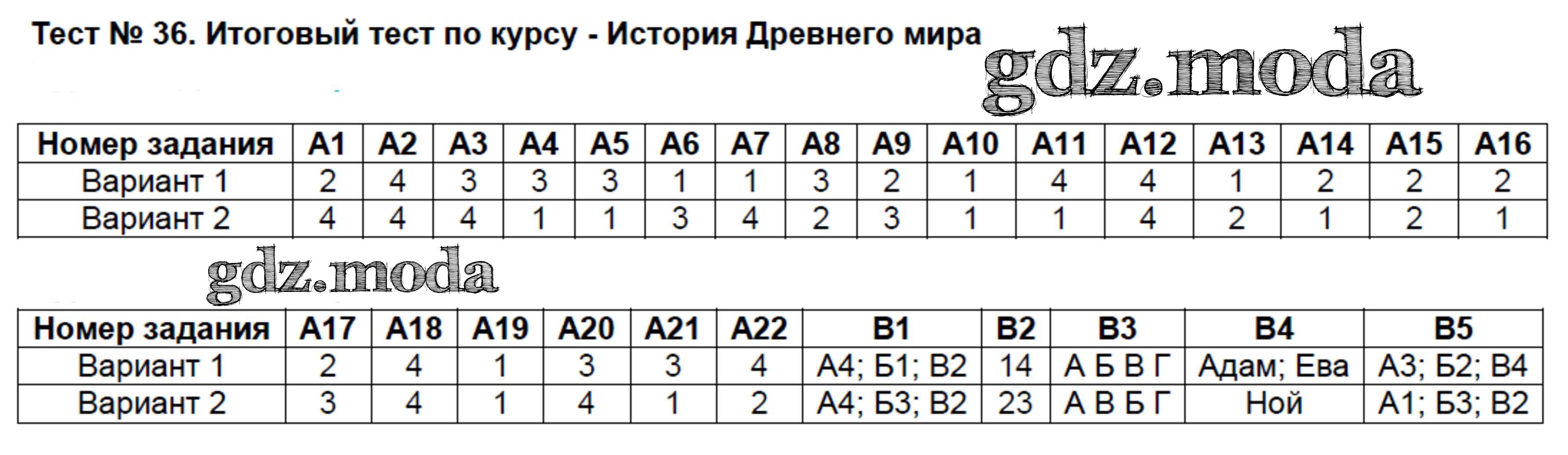 ГДЗ решение к заданию № Тест №36. Итоговый тест по курсу - История Древнего мира Всеобщая история. История Древнего мира 5 класс контрольно-измерительные материалы Волкова К.В. ВАКО 2017 ФГОС бесплатно на гдз.мода!