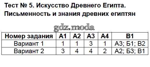 ГДЗ решение к заданию № Тест №5. Искусство Древнего Египта Всеобщая история. История Древнего мира 5 класс контрольно-измерительные материалы Волкова К.В. ВАКО 2017 ФГОС бесплатно на гдз.мода!