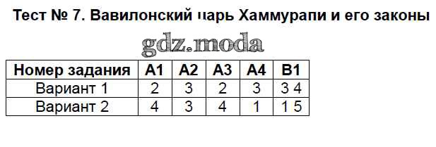 ГДЗ решение к заданию № Тест №7. Вавилонский царь Хаммурапи и его законы Всеобщая история. История Древнего мира 5 класс контрольно-измерительные материалы Волкова К.В. ВАКО 2017 ФГОС бесплатно на гдз.мода!