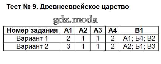 ГДЗ решение к заданию № Тест №9. Древнееврейское царство Всеобщая история. История Древнего мира 5 класс контрольно-измерительные материалы Волкова К.В. ВАКО 2017 ФГОС бесплатно на гдз.мода!