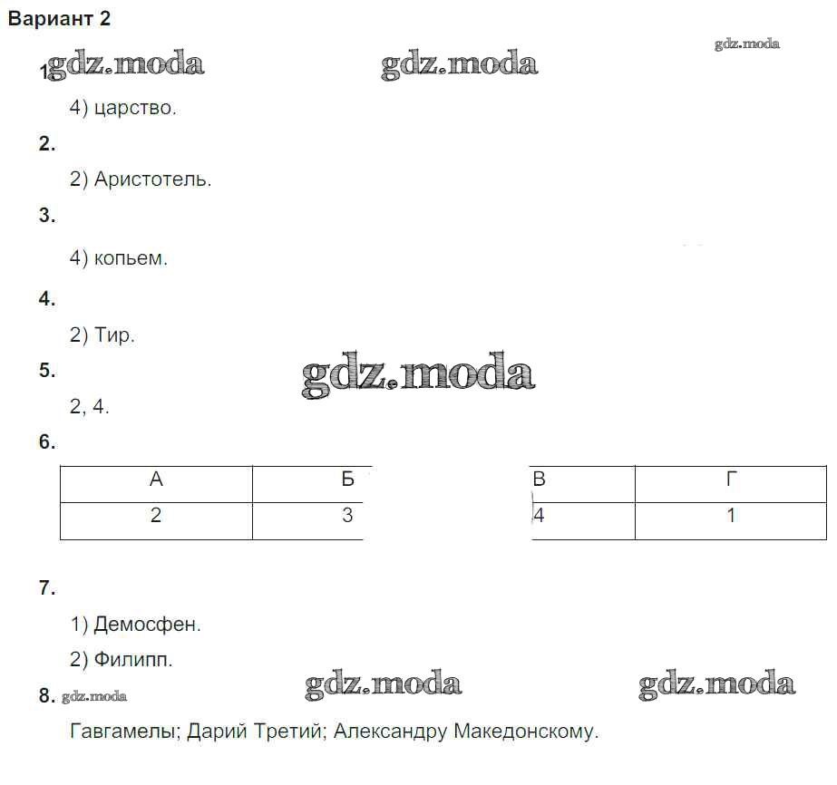 ГДЗ решение к заданию № Вариант №2 Всеобщая история Древнего мира 5 класс проверочные и контрольные работы Крючкова Е.А. Просвещение 2015 ФГОС бесплатно на гдз.мода!