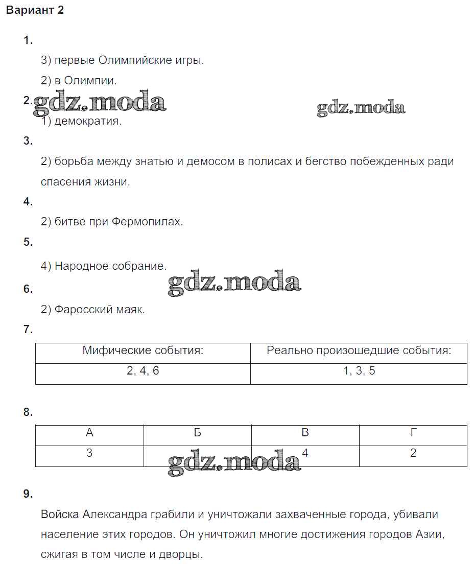 ГДЗ решение к заданию № Вариант №2 Всеобщая история Древнего мира 5 класс проверочные и контрольные работы Крючкова Е.А. Просвещение 2015 ФГОС бесплатно на гдз.мода!