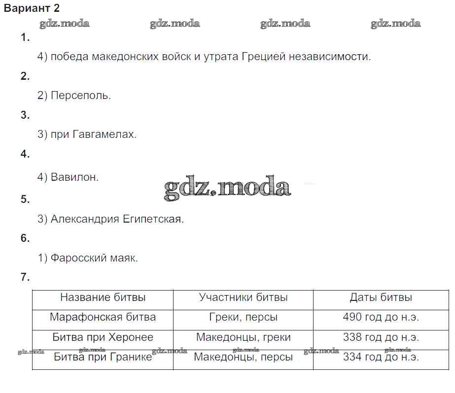 ГДЗ решение к заданию № Вариант №2 Всеобщая история Древнего мира 5 класс проверочные и контрольные работы Крючкова Е.А. Просвещение 2015 ФГОС бесплатно на гдз.мода!