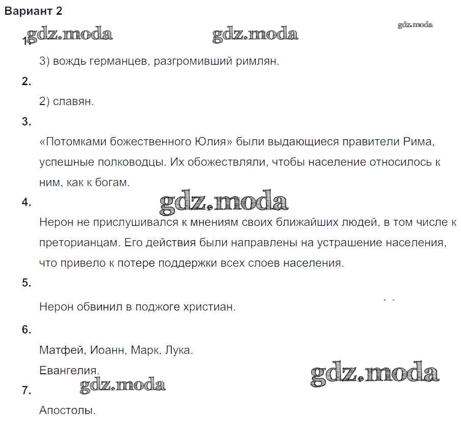 ГДЗ решение к заданию № Вариант №2 Всеобщая история Древнего мира 5 класс проверочные и контрольные работы Крючкова Е.А. Просвещение 2015 ФГОС бесплатно на гдз.мода!