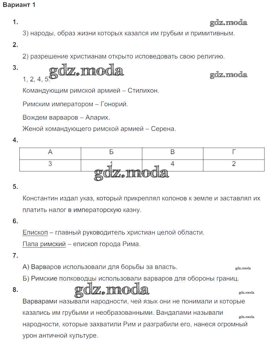 ГДЗ решение к заданию № Вариант №1 Всеобщая история Древнего мира 5 класс проверочные и контрольные работы Крючкова Е.А. Просвещение 2015 ФГОС бесплатно на гдз.мода!