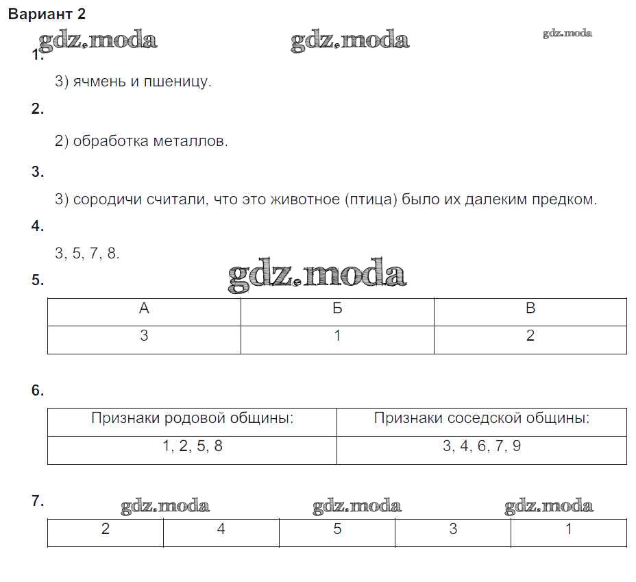 ГДЗ решение к заданию № Вариант №2 Всеобщая история Древнего мира 5 класс проверочные и контрольные работы Крючкова Е.А. Просвещение 2015 ФГОС бесплатно на гдз.мода!